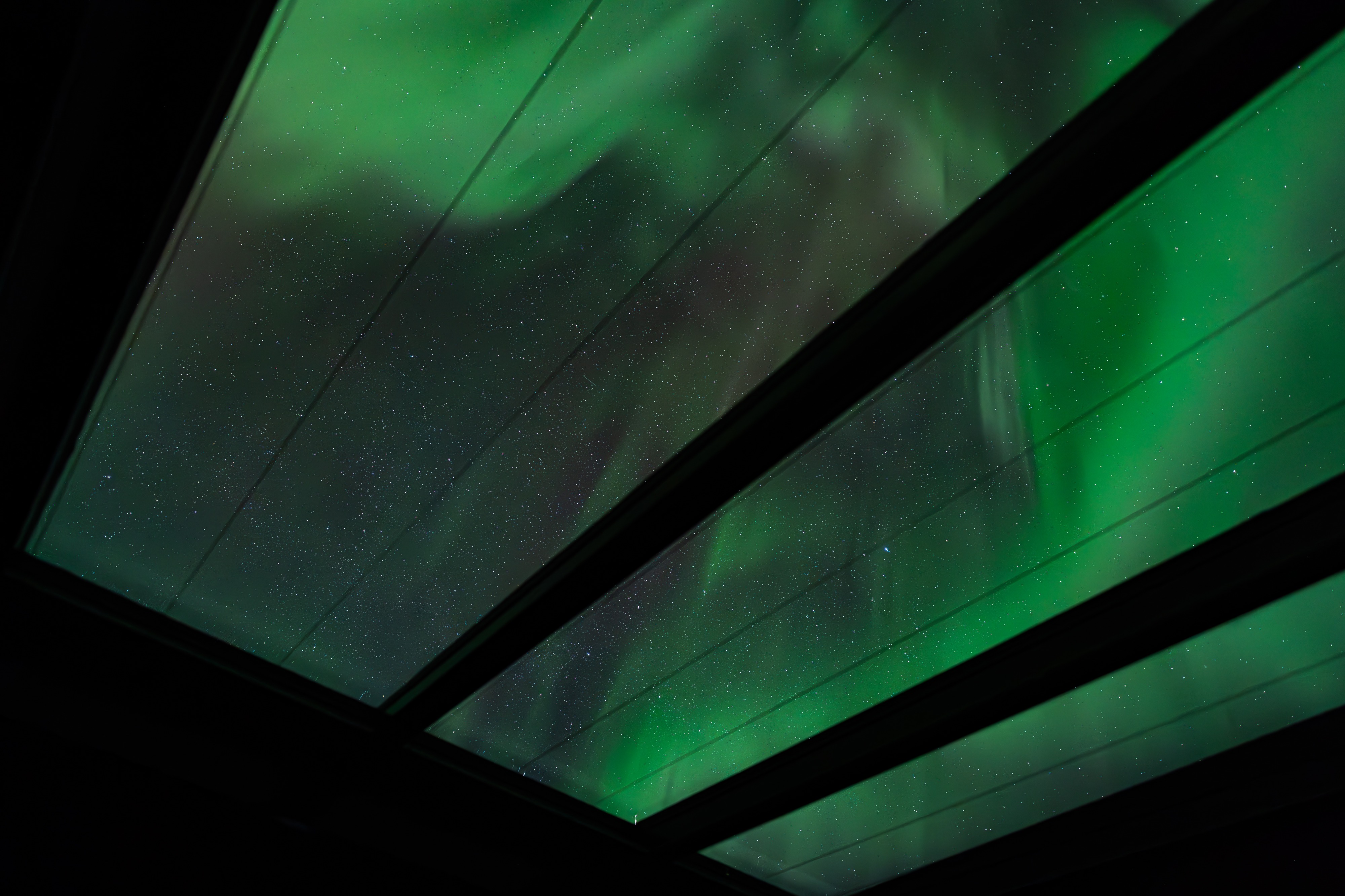 Das Holz der Wände dieses Spiegelhauses wuchs in Finnland langsam und von reiner Natur umgeben. Es gab wohl auch keine Hunde, die da dran gepinkelt haben. Die Bäume haben während ihres Lebens mehr Kohlendioxid gebunden, als sie am Ende des Lebenszyklus freisetzen. An den Wänden im Cabin tritt an vereinzelten Stellen Harz aus, was von der massiven Bauweise her kommt und die hohe Qualität unterstreicht. Es bringt zudem einen Hauch von Natur ins Innere.