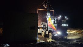 The mirror houses were manufactured in Finland and transported as whole units to West Iceland. The journey began by truck from Oulu in Finland to Aarhus in Denmark, continued by ship to Þorlákshöfn in Iceland, and finally came by truck to Búðardalur. At the site at Ljárskógaströnd, they were placed on the previously laid foundations using a crane.